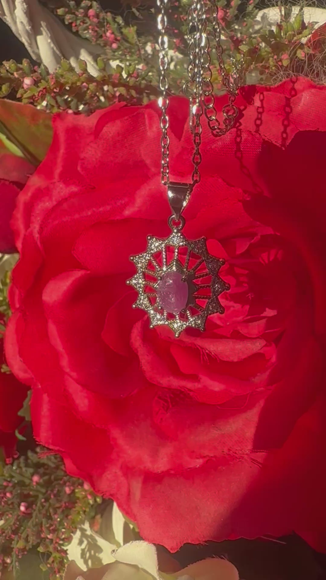 Ciondolo in Rubino rosso e collana (in argento925)